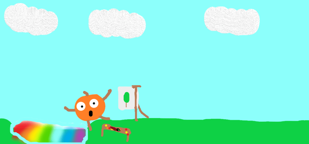 Մի անգամ դդումը որոշեց նկարել իր ամենամոտիկ ընկերըջը, ընկերը կանգնեց գունավոր գետաի մոտ, իսկ դդումը նրան նկարում էր։ Դդումը շատ-շատ լավ էր նկարում։ Բայց մի օր դդումը ընկավ այդ գունավոր գետակը և սրանից հետո նա դարձավ գունավոր նկարիչ դդումը, նրա ընկերները նրան անվանում էին գունավոր դդում, նա արդեն ավելի լավ է նկարում և գունավոր դդումը բացեց իր ցուցահանդեսը այնտեղ նրա ընկերների նկարներն էին նրա նկարած նածյուրմորտներն էին մարդկանց երեսներն էին։ Գունավոր դդումի ընկերները շատ զարմացան, որ նա այդքան գեղեցիկ է նկարում։ Մի օր նա դուրս եկավ, որ մագուր օդ շնչի և հանկարցակի տեսավ իր ընկերներին որոնք նրա պես գունավոր էին և շատ լավ էին նկարում, նա շատ ուրախացավ։ Բայց գունավոր դդումը ամենա գունավոր դդումն էր երկրում։