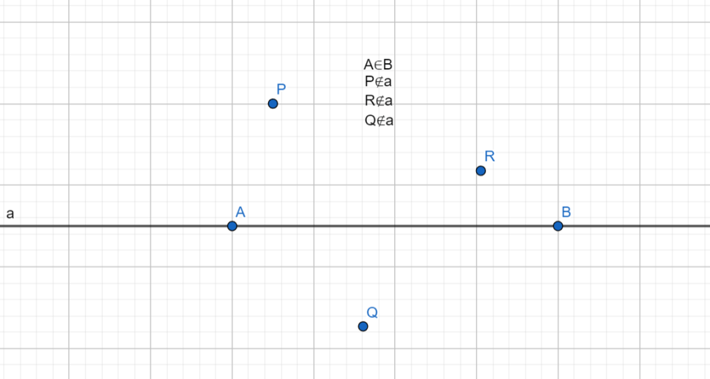 1. Տարեք ուղիղ, այն նշանակեք a տառով, նշեք այդ ուղղի վրա գտնվող A և B կետեր և նրա վրա չգտնվող P, Q և R կետեր: Օգտագոր ծելով € և ≠ պայմանանշանները՝ նկարագրեք A, B, P, Q, R կետերի և a ուղղի փոխադարձ a դասավորությունը: