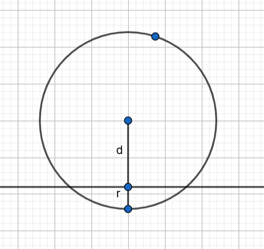 1) Դիցուք՝ d-ն r շառավիղով շրջանագծի կենտրոնի հեռավորությունն է p ուղղից։ Գծե՛ք և ցույց տվեք ինչպե՞ս են միմյանց նկատմամբ դասավորված շրջանագիծը և p ուղիղը, եթե՝