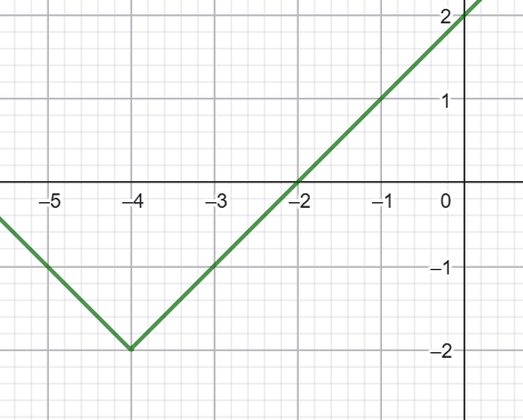բ) y = |x + 4| — 2