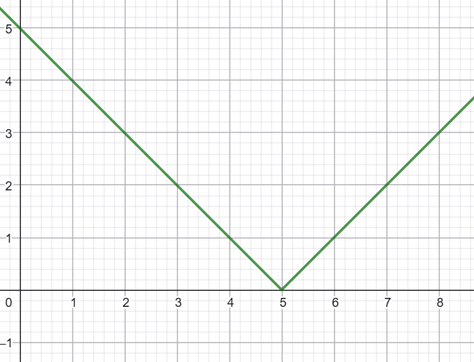 բ) y = |x — 5|